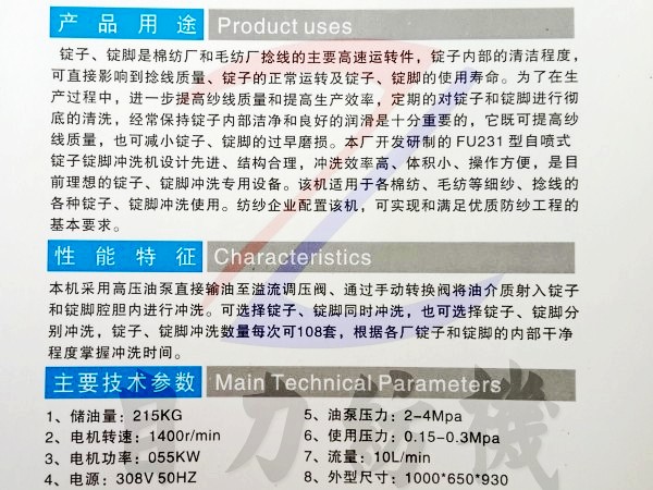FU231型錠子錠腳沖洗機(jī)的產(chǎn)品詳細(xì)介紹: