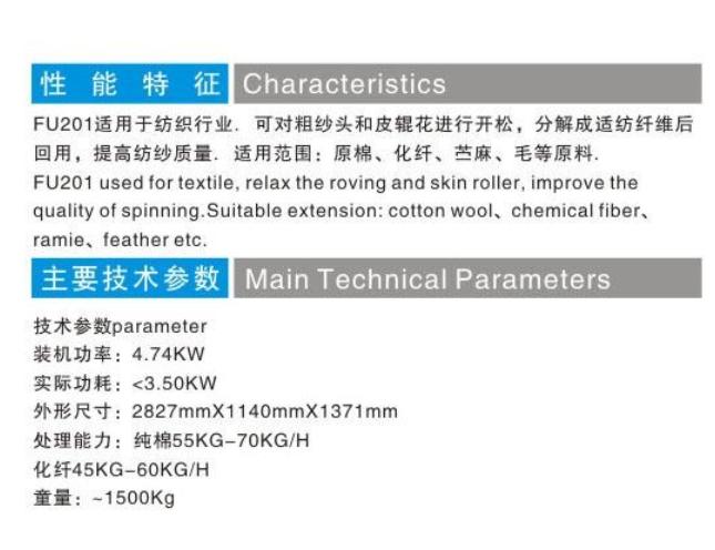 FU201型粗紗頭開松機(針板開松)的產(chǎn)品詳細介紹: